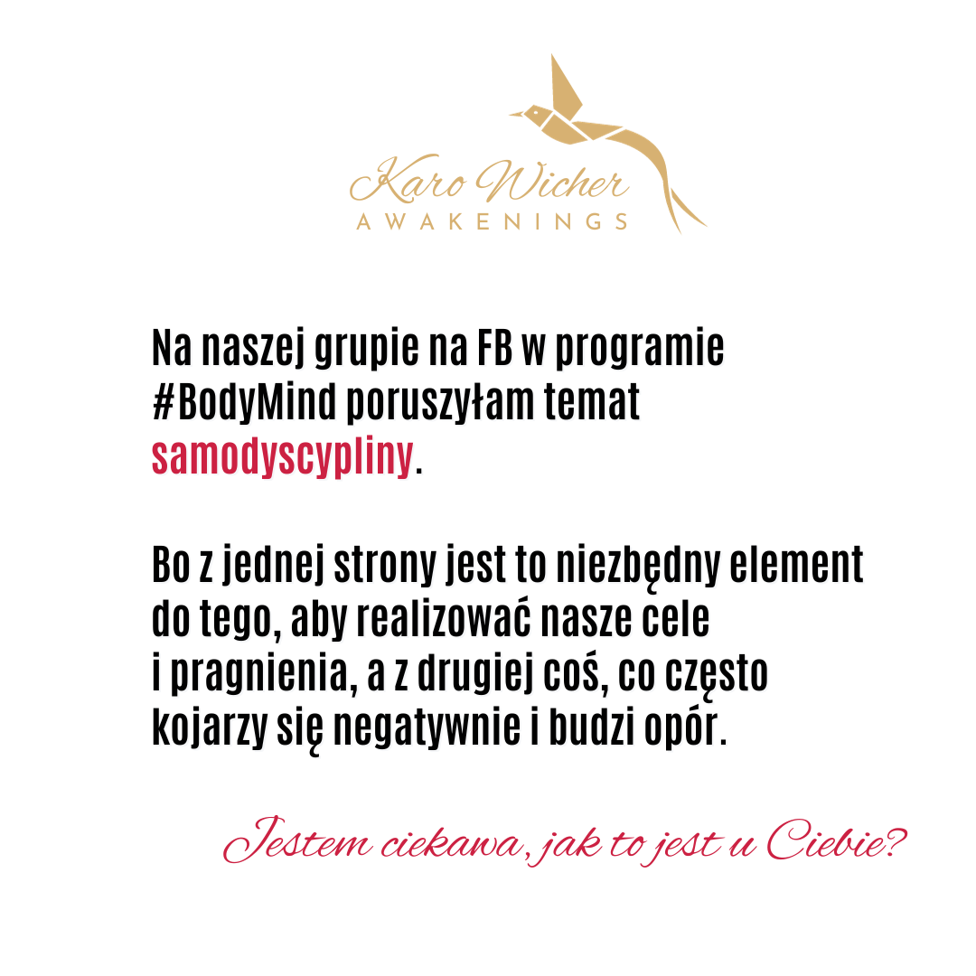 Na naszej grupie na FB w programie #BodyMind poruszyłam temat samodyscypliny.