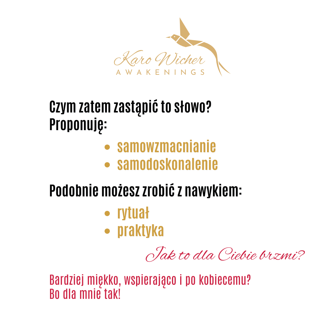 Jeżeli słowa nawyk i codzienna rutyna również mają dla Ciebie bardziej negatywne zabarwienie, niosą w sobie ciężar lub nudny obowiązek, zastąp je: